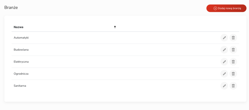 Moduł „Branże” to prosty moduł słownikowy umożliwiający zarządzanie listą branż w systemie.