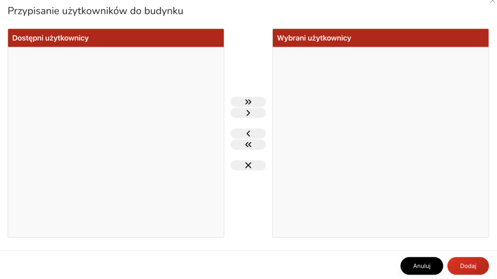 - Funkcja umożliwia przypisanie jednego lub więcej użytkowników do danego budynku.