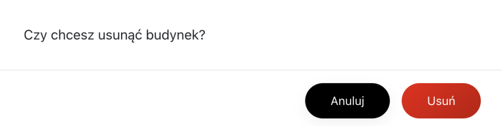 - Opcja trwałego usunięcia budynku z systemu.
