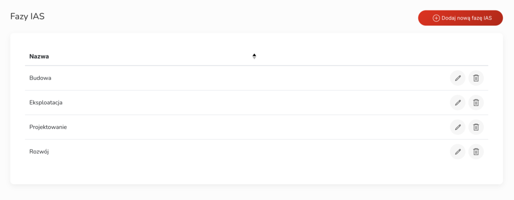 Moduł „Fazy IAS” umożliwia zarządzanie listą faz IAS (International Accounting Standards) w systemie. Moduł ma charakter słownikowy.