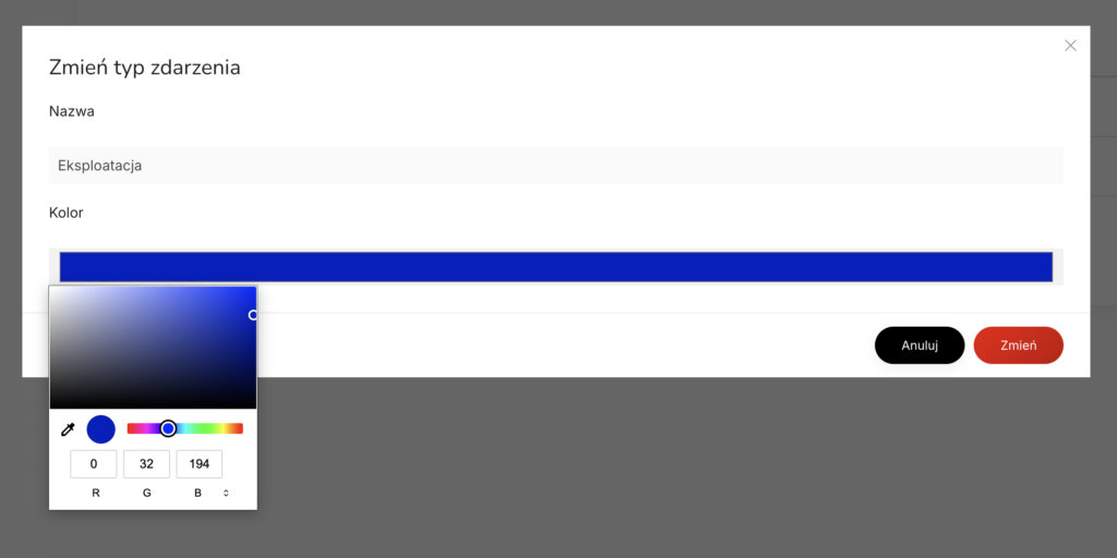 - Edytowanie zdarzeń: Możliwość modyfikacji istniejących typów zdarzeń, takich jak zmiana nazwy lub koloru.